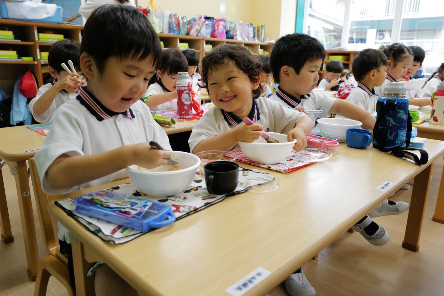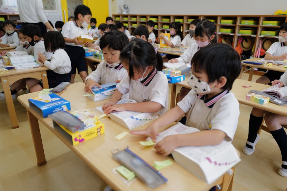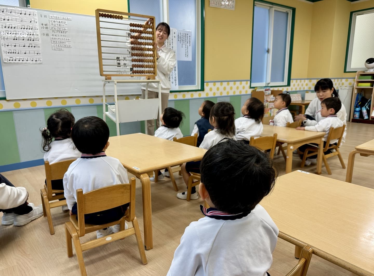 毎朝20分のプログラム。暗誦、カード、そろばん、俳句、ことわざ、発声などをリズミカルに進め、集中力と思考力を育みます。