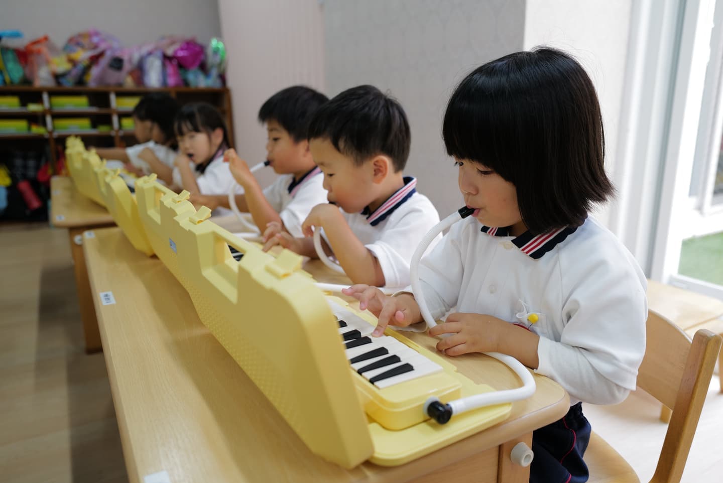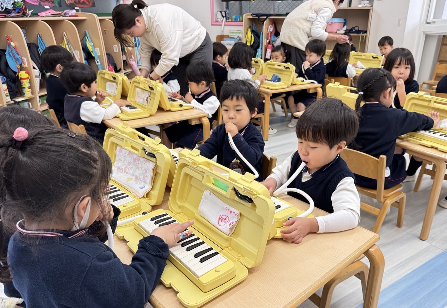 - 音楽あそびー季節の歌、鍵盤ハーモニカ、器楽合奏