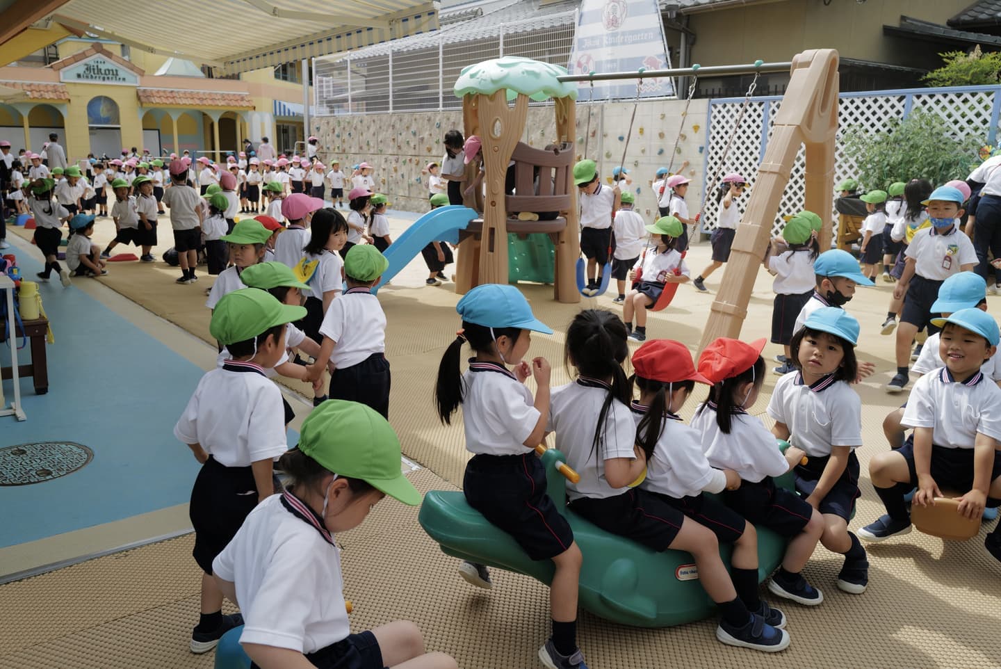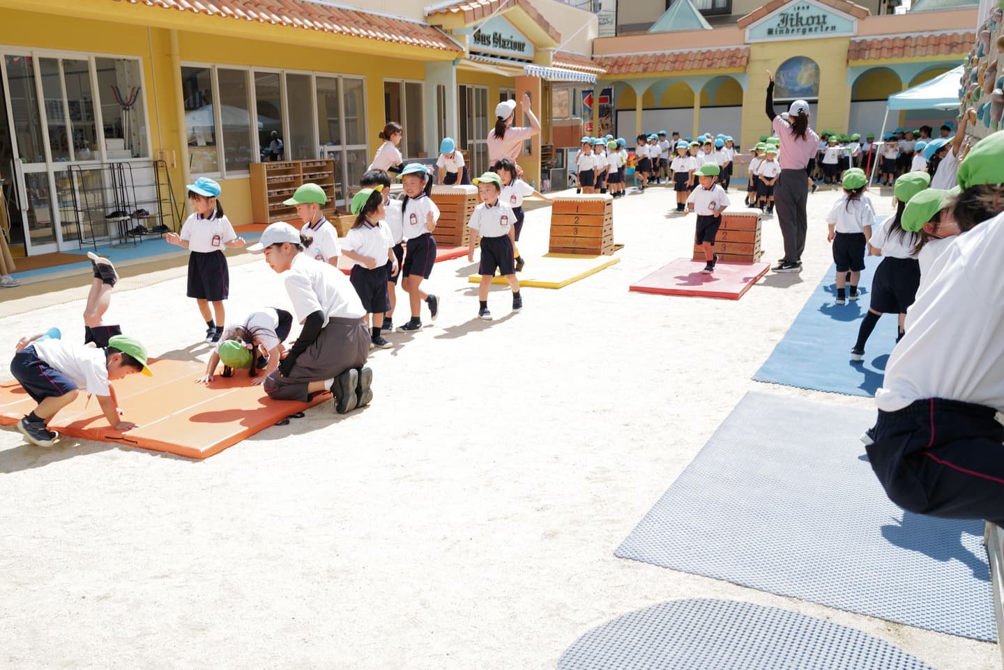 - 体育ローテーション(跳び箱、マット、鉄棒、クライミング、ボール、なわ、竹馬など)
